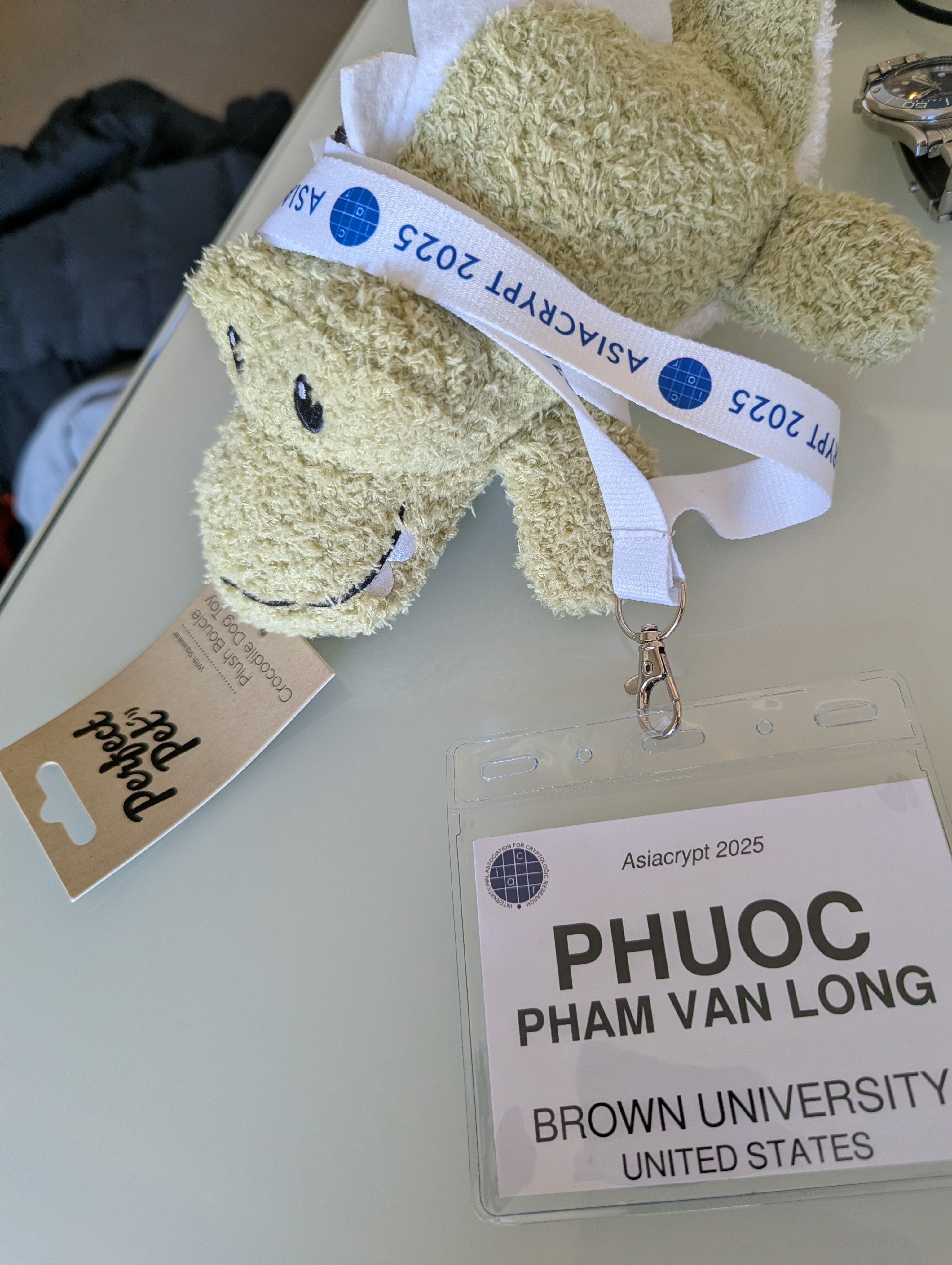 - Dec 2025: I won Funniest Talk at Asiacrypt 2025 Rump Session!